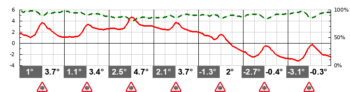 Temperature °C Relative humidity % Min/Max °C Frost warning Temperatures below 3 °C |